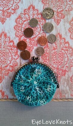 Materials: - 15.3 Yards of #5 Embroidery Floss - I used 3 Skeins of Artiste's Cotton Pearl #5 in the Cool Waters colorway - D3mm Crochet Hook - Tapestry Needle for Weaving in Ends - 3.35" (8.5 cm) Coin Purse Frame - I used the Yarnology's Purse Frame #827022