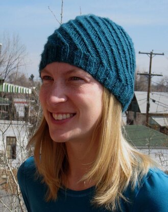 The Whirlwind Hat features spirals of both knit and purl stitches that swirl around the hat. The hat is knit from the bottom up and with the combination of knits and purls, the hat is very stretchy to fit a wide range of adult heads. The directions are written out.