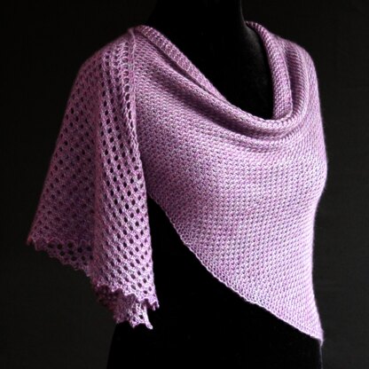 The sample is knit with 300g of Lottie Knits Aglow DK (colourway Wisteria), for a cosy wrap!