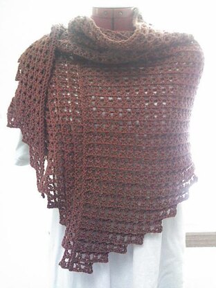 The shawl is asymmetrical. The first section is crocheted top-down & the second is crocheted outward. You can customize into any size you want. You can customize the border too, with less gathers. This pattern will work with any kind of yarn and colours. Gauge is unimportant.