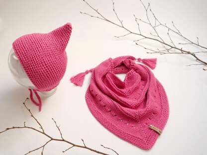 Mit diesem bestechend schicken Set aus einer Mütze im wunderschönen Pixie-Design und dem trendigen Tuch genießen die Kleinsten kuschelige Wärme an kühlen Tagen. Das Dreieckstuch kann auf jede gewünschte Größe problemlos angepasst werden und durch die schönen Quasten wird es zum absoluten Hingucker. Größen: Neugeborenes bis 5 Jahre (Kopfumfang von 36 cm bis 53 cm)