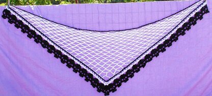 Shawl or scarf worked from the top down. The border is added last. Size is determined by hook size.