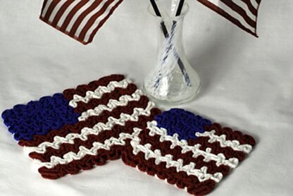 Our wiggly crochet July 4th hot pad and coaster is a great addition for celebrating any patriotic holiday, including Memorial Day and Veteran’s Day! The hot pad is perfect for the hot dish at your patriotic celebration meal while the coaster keeps surfaces unharmed from water rings. And they make great gifts, too!