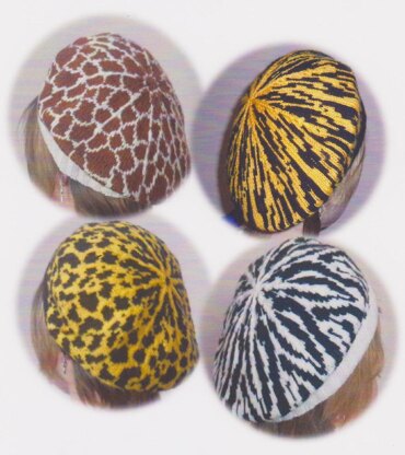 I used a variety of contrasting pairs of 4ply/fingering yarns to knit the four individual berets pictured and the finished blocked sizes varied slightly as a result, some berets being slouchier than others, depending on the nature of the yarn. All the berets fit my "average" head perfectly well however, including the 100% acrylic version that I made for my wool allergic friend.