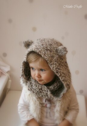 Bear hooded scarf knitting pattern, Kids hooded scarf knit pattern | WILLOW infinity scarf