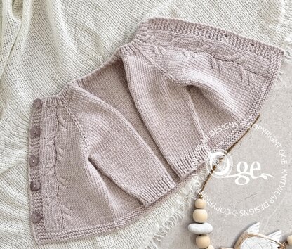This simple little top down cardigan is a treat to knit. Has a very easy cable pattern running down the front which gives the effect of falling willow leaves. This pattern has two versions, one for sleeves knitted in the round, and the other for sleeves knitted flat. Classified as suitable for the Advanced beginner / Intermediate knitter who can handle a simple cable pattern.