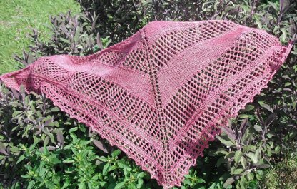 My 3 'Berry' shawl designs have been published together in a small ebook - The Berry Shawl Collection. This is the fingering weight version of the original Bilberry Shawl. This version gives a shallower but wide shawl by extra increases and has a slightly different picot cast off. The sample is made using The Natural Dye Studio Precious 4 ply which is a silk yarn and gives fabulous drape. The colour is Red Brook. This pattern is relatively easy, so it is suitable for a beginner knitter. Increases are by yarn overs, the body has sections of eyelets made by yarn overs and the edging is a simple picot cast off. It is an easy lace design. The finished size is approximately 160cm by 50cm after blocking. Requires approx 350m of sock yarn