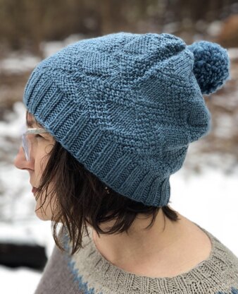 This cozy knit hat is loaded with texture with an allover knit/purl geometric pattern that's easy to work .