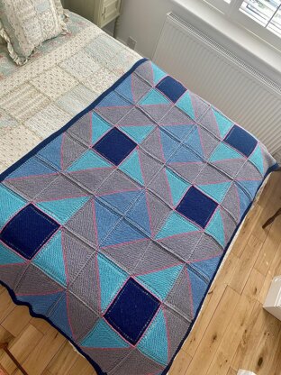 To make the size in the pattern, I knitted 54 squares in total using Aran weight yarn and 5mm (US 8) needles. The pattern repeat contains 9 small squares, which are joined to make one big square; make 6 of these before joining to complete an Afghan. The Afghan size can be altered by using different weight yarn and different size needles, also knitting more/less squares or increasing/ decreasing more/less rows. Crochet is a great way to join together all squares, giving to your blanket more structure. However, if you want your seams to be less visible use mattress st, or any other you prefer.