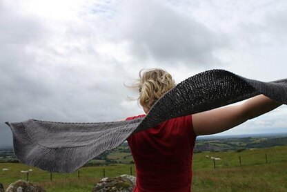 This shawlette features a simple braided top edge, lightly slanting stockinette stitch and squishy garter stitch. The two halves are worked from the outer tips to the center, then joined on one needle. You can work the two halves separately one at a time or simultaneously on a longer circular needle, using the inside and outside of the ball of yarn.