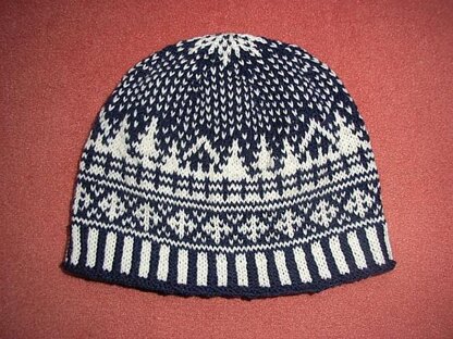 This my this season's favorite winter beanie (up to now ;-). It has a corrugated ribbing, a sweet snowflake peerie at the bottom and a lovely snow landscape with fence, houses and trees at the body. Snowflakes cover the upper half of the beanie and at the top is a single big white snowflake.