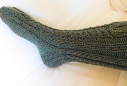 Stretchy 2x2 ribbing combines with pretty cables to make these mid-calf winter socks. For knee socks, knit to 12-13” or desired length before beginning heel. Great for wearing with boots or around the house, you’ll want to knit more than one pair.
