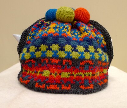 This striking tea cosy uses traditional Fair Isle patterns however they have been given a lift by the use of bright colours rather than the muster tones often used in Fair Isle. The Cosy is fully lined to keep you tea nice and hot. The beauty of this cosy is that it is knitted all in one piece except for the spout and handle openings which are picked up and knitted in garter stitch during the making up process. Knitted pom pom finish off this little Fair Isle work of Art. If you are not keen on this colour scheme I recommend taking seven balls of yarn and placing them side by side, mixing them around until you are happy with the colour scheme. If there is a colour which seems an odd one out try replacing it with something else. Remember warm colours tend to go with each other, reds yellows, oranges and earthy tones and cool colours go together - blues greens, purples, greys.