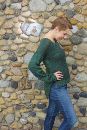 Finished Size 34 (37.5, 40, 43.5, 47)” bust / chest circumference. Sweater sample shown in 37.5” with no ease.