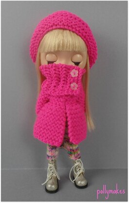 Keep your dolls cozy this winter with a fabulous chunky knit coat with matching muffler and a onesie for underneath! The coat is knit using 2 strands of DK (worsted) and the muffler with 1 strand. The onesie is knit from 4 ply (fingering) weight yarn. To make the other sizes you may need other needle sizes. One ball of Stylecraft Special DK is plenty for 2 sets.