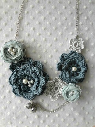 - * a piece of taffeta for the rosettes * pearls in various sizes * metal chain, jump rings and metal filigree beads