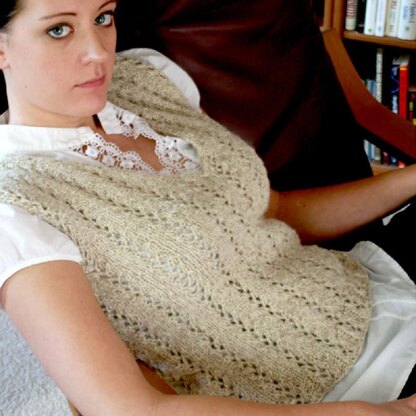 A charming lace vest with strong, vertical columns of twining eyelets, Wisteria is a feminine statement in a rustic tweed fiber. A deep V-neck and a clean finish at neck and armholes emphasize the slenderizing vertical appeal.