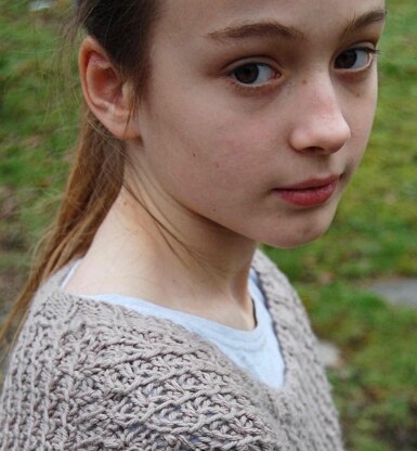 Meet Withstand. The deep texture of this sweater will baffle any amount of wind and cold; and, what is more, is so stretchy that it will withstand the amazing capacity of children to outgrow less forgiving garments (larger sizes will fit adult women up at 0 ease with a little extra length added).