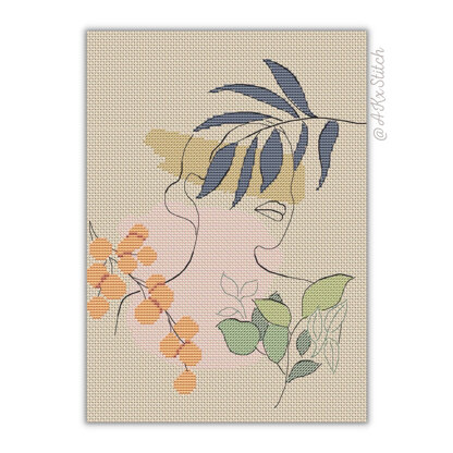 Woman Line Art Counted Cross Stitch Pattern and PDF Digital Download. The pattern features a woman and botanical elements in a minimalist line art style. Modern and unique wall decor. Fun and easy pattern with stunning results.Stitched on Aida 14ct: 18 x 23 cm (7 x 9 in)DMC Threads: 9 solid colours (0 blends)Used stitches: full cross stitch, half cross-stitch, backstitchSkill level: Easy / BeginnerStitch time: 15-25hCross stitch pattern in PDF, Instant Digital Download includes: 1) cover page with preview; 2) instructions, symbols key and shopping list (DMC thread colour numbers and estimates, as well as fabric options); 3) two black and white charts, with and without backstitch; 4) two colour charts, with and without backstitch; 5) single-page file for Pattern Keeper (available on request).Please note: This pattern is for personal use only - not for commercial use. You can't make copies of our charts to distribute (either as PDF or printed versions) but you can definitely sell your finished cross stitch work.