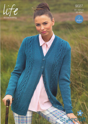 Women's Cable Cardigan and Waistcoat in Stylecraft Life DK - 9027 est un modèle de Tricot par Stylecraft, disponible au format Dépliant et comprend des instructions en Anglais. Super amusant à réaliser, ce modèle pourrait être votre prochaine œuvre d'art !