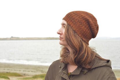 A standard ribbed hat with a twist - twisted stitches and simple cabling create a wood grain appearance in a luxurious brown sportweight yarn. The twisted rib creates a very stretchy material that will fit many head sizes. Choose a yarn with a soft hand and good stitch definition for the best result. The Woodgrain Hat works for men and women alike.