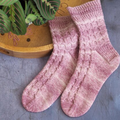Woodland Bells are a simple cabled sock pattern using 4 ply/fingering weight yarn, worked from the top down with a pretty cuff. The stitch pattern evokes memories of woodland flowers, such as foxgloves and bluebells. There are multiple sizes to fit your needs.