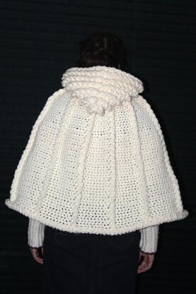 This is a beautiful cape with eye-catching cables. It is made entirely with 2 strands of yarn held together so is quite warm.