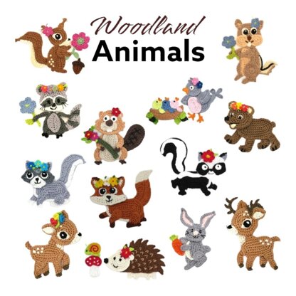 The pattern provides instructions to make a cute crochet applique that can be used in inumerable ways...decorate and personalize your favorite objects like hats, t-shirts, bags, school knap-sacks and lots of other stuff you can think of. Sizes: The Deer about 5 1/2 in. in height by 4 1/2 in. wide The Rabbit about 5 in. in height by 3 1/2 in. wide The Skunk about 5 in. in height by 6 1/2 in. wide The Bear about 3 in. in height by 4 in. wide The Fox about 6 in. across by 5 in. wide The Wolf about 6 in. across by 5 in. wide The Beaver about 5 1/2 in. in height by 5 1/2 in. wide The Squirrel about 5 in. in height by 5 in. wide The Chipmunk about 6 in. in height by 5 in. wide The Raccoon about 4 in. in height by 4 in. wide Using 2.5 mm crochet hook, but the size can be varied by using thinner or thicker yarn and types of hook. Colors can be changed according to your personal preference. The pattern is designed for worsted weight yarn and uses American English crochet terms.