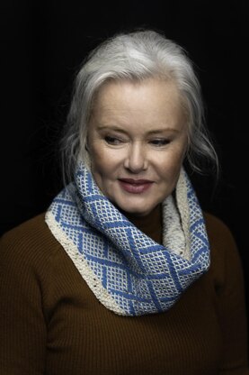 Is it weaving or is it an illusion? This cowl is hand knit in the round using moss stitch and woven float technique. (This is very similar to stranded color work though the focus is on the purl side of the work instead of the knit side.) It's a lovely, quick project that is bound to turn heads, ideal for advanced beginners.