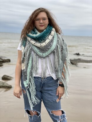 Finished Measurements 18” 46 cm deep at center x 54” 137 cm wingspan – 1 skein^