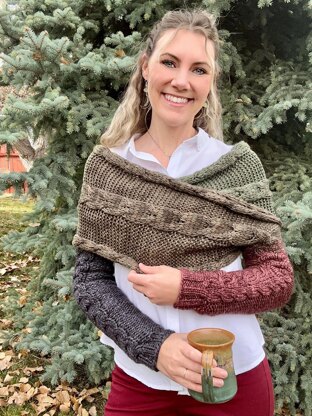 The Wrapped in Cozy Shrug is an unconventional sweater that is also recognized as a scarf with sleeves. It can be worn multiple ways, and the cables are designed to be flattering on both right side and wrong side of the shrug when wrapped. Lovely horseshoe cables compliment the this chunky knit. Best of all, it is quick and COZY!