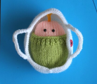 This baby and bear are the exact same size as my baby and bear wrapped in a blanket pattern so they compliment each other perfectly. The basket does up with a button on the side to keep baby snuggled and warm and the carry handle make it easy for small fingers to carry.
