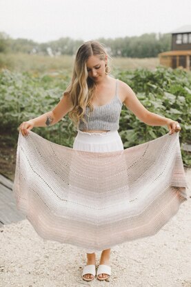 This light and airy half-circle wrap is crocheted using gradient yarn that has been intentionally dyed to slowly change colours as you work with it, creating a beautifully soft colour transition throughout your work. Evenly spaced rows of eyelets ripple out from the center, adding a touch of elegance to your finished piece. Crocheted using basic stitches, this feminine shawl is perfect for a beginner crocheter or anyone looking to create a beautiful accessory with minimal effort.