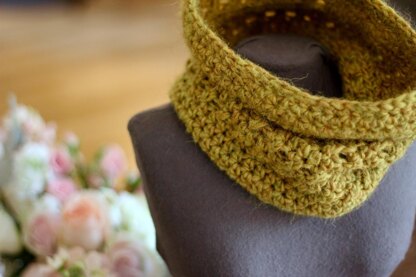 This is the "X-Stitch Neckwarmer" crochet pattern for a cozy, textured cowl you can pull up to keep your face warm or scrunch down for a slim profiled scarf. It looks lovely peeking up from your coat collar! It's a great beginner pattern or a quick project for the experienced crocheter because of the complex-looking texture created using only basic stitches.