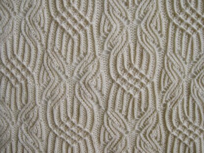 This is a pattern for a light and lacy stole. The feature stitch comes to us from Japan, and is a very unique twist and lace stitch. It also contains smocking.