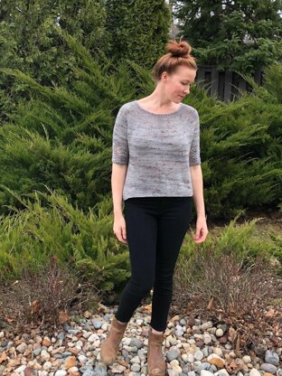 This dainty little top down tee is the perfect quick knit! Lots of mindless stockinette stitch in the round with a pretty lace detail on the sleeves. This top can be dressed up or down, and you may just want to knit more than one!