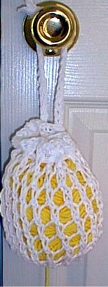 Why did we not think of this before! A great place to keep your ball of yarn, while knitting! It has a loop handle to fit over doorknob. The a nice mesh, stretchy basket to hold ball of yarns in lots of sizes. There is an opening at bottom for yarn to flow out while you are working! This makes a nice gift! So fast and easy to knit up too! Uses worsted weight cotton yarns, knitting needles US# 10.5. Finished size is about 6 inches high.