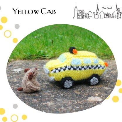 All parts are knitted flat and sewn up at the end. No circular knitting is required. The pattern includes the Yellow Cab and a dog.