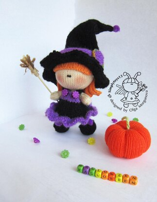 Materials needed: • 2 double-pointed needles in a size suitable for the yarn weight you are using. I recommend using needles a size or two smaller than the yarn calls for, to produce a firm fabric. İ used Needles size 2 (3mm) for doll and size 4 (3,5mm) clothing. • Cream yarn Special Stylecraft ( color 1005 ) (100% acrylic 304 meters / 100 grams) for doll • Black color (1002 ) and purple color (Lobelia 1825) yarn Special Stylecraft (100% acrylic 304 meters / 100 grams) for dress, shoes and hats • Orange yarn color (Jaffa 1256 ) Special Stylecraft (100% acrylic 304 meters / 100 grams) for wig and pumpkins • Grass green color (1821) yarn Special Stylecraft (100% acrylic 304 meters / 100 grams) for pumpkins • Plastic tube length of about 10 cm. (For attachment of the head, neck and body together)
