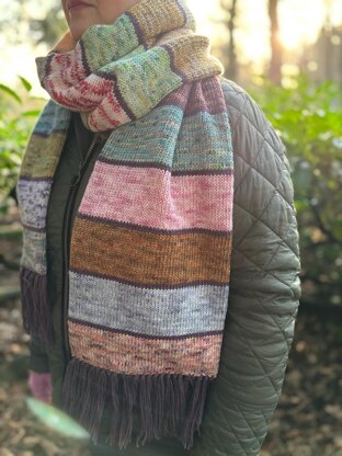 The scarf is knitted in the round on a short circular needle, so it makes a wonderful beginner project. The pattern contains 4 video tutorials showing all aspects of knitting the scarf.