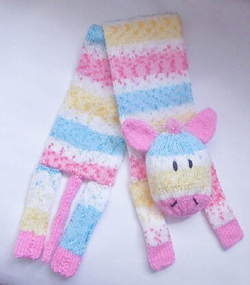 Adorably cute colourful Zebra Character knitted Animal Scarf pattern