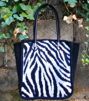 Needles: US 7 (4.5mm) Adjust needle size to obtain correct gauge Notions: tapestry needle, a pair of black PU leather handles 63.5cm/25” long, 3m/118” black wire cord, black lining fabric, black sewing thread, magnetic snap, a piece of waist yarn in a contrast color.