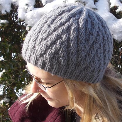 ZigZag is a reversible hat that can be worn in two ways – with the insides of the diamonds facing out (wrong side out) like the first picture, or with the diamonds facing in (right side out) like the third picture.
