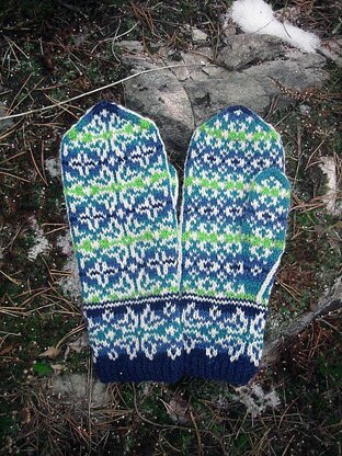 Winter classic - multicolored mittens with snowflakes. 64-sts wide, with thumb gusset. Can be knit with either fingering or sport weight yarn, depending on desired size. The PDF also have an additional chart demonstrating very different color combination. For a limited time, this pattern is free with any purchase totaling $4.99 or more (only on Ravelry); no code needed. Don't forget to put it in your cart. Photos by Mitt.