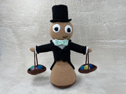 With yarn length 160m/50g this libra is about 26 cm high.