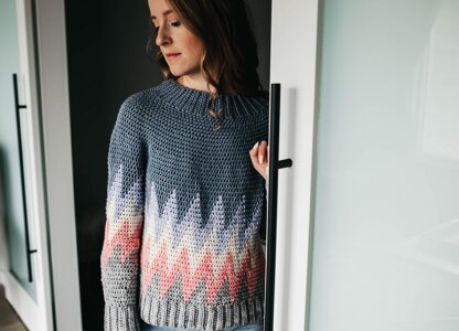 Materials: 3.75 mm crochet hook Colour A: 375 (400, 440, 480, 525)(570, 610, 655, 700) metres, B, C & D: 120 (130, 140, 155, 170)(185, 200, 215, 225) metres each, E: 240 (260, 280, 310, 340)(370, 400, 430, 450) metres of DK weight yarn