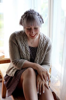 Zopflicious is a loose fitting cardigan celebrating the beauty of cables. The cardigan has an interesting construction: you start by casting on stitches from cuff to cuff. Once the body is finished, all that remains are the sleeve cuffs with a bit of ribbing. Most of the cardigan is worked in seed stitch, switching the places of knits and purls on every row. This will take a bit of concentration with the cables but the result is worth the trouble.