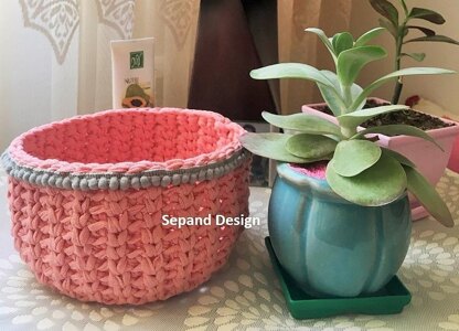 Zpaghetti yarn basket- pink circle (t-shirt)